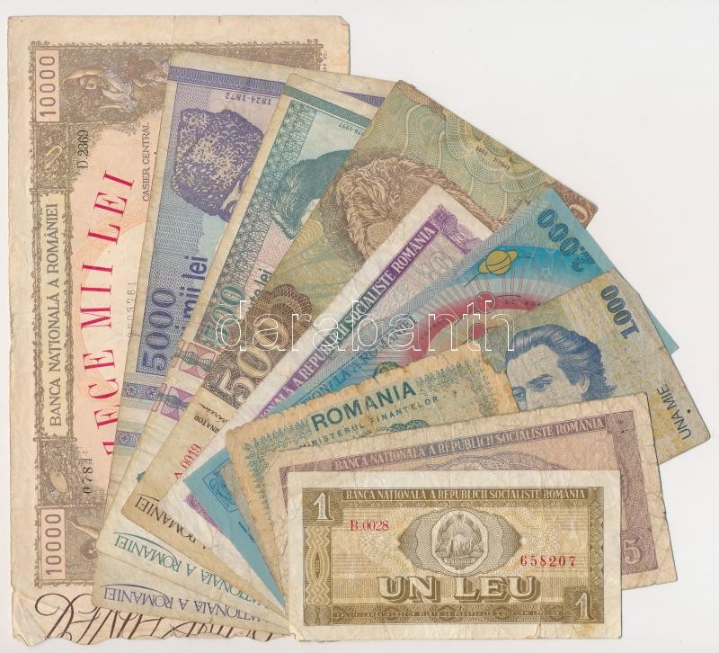 Beschreibung: Románia 1946-1999. 10db-os bankjegy tétel, mind különféle T:III,III-