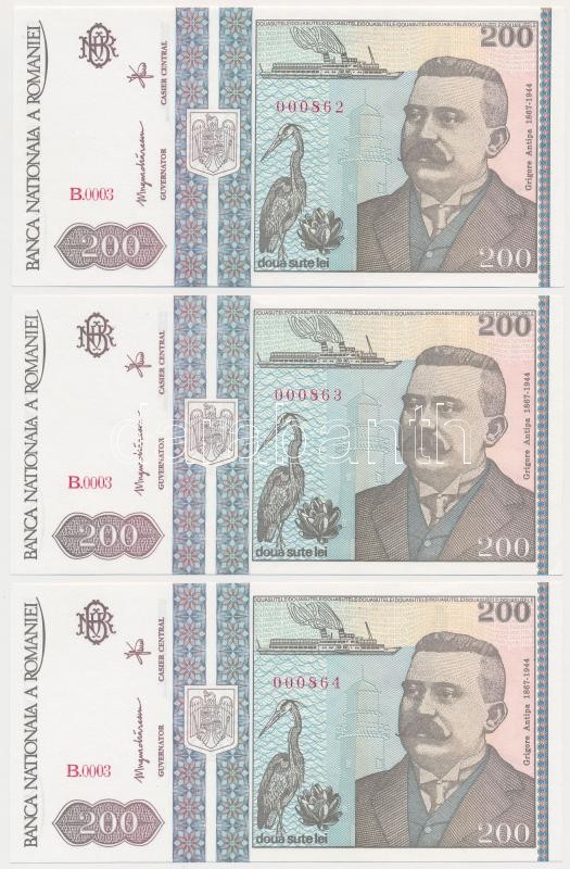 Romania 1992. 200 Lei (3x) sequential serials C:UNC