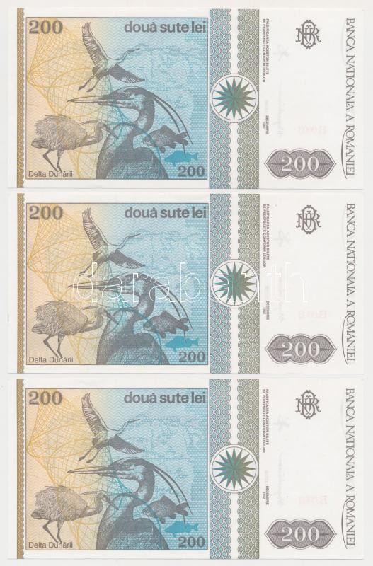 Romania 1992. 200 Lei (3x)... https://www.darabanth.com/de/349-Fernauktion/349.0/Numismatik/Weltweit-Banknoten~1000011/Romania-1992-200L-3x-sorszamkovetok-TI-Romania-1992-200-Lei-3x-sequential-serials-CUNC-~II1985324