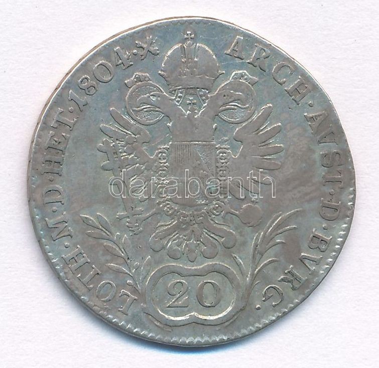Ausztria 1804A 20kr Ag "II. Ferenc" (6,39g) T:3 patina Austria 1804A 20 Kreuzer Ag "Franz II" (6,39g) C:F patina Krause KM#2139