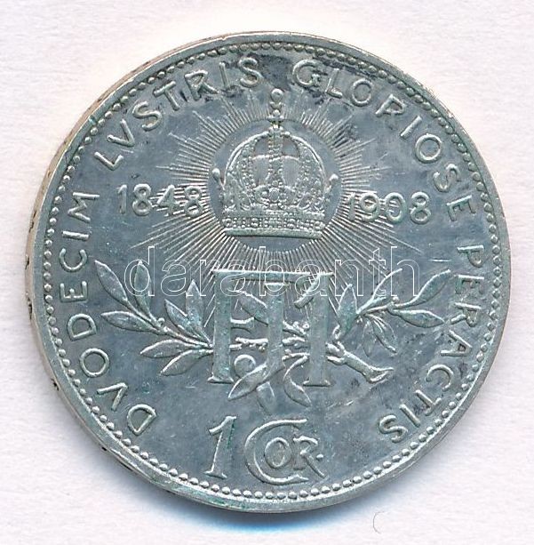 Aus... https://www.darabanth.com/de/349-Fernauktion/349.0/Numismatik/Weltweit-Munzen~1000012/Ausztria-1908-1K-Ag-Ferenc-Jozsef-Jubileum-T1-2--Austria-1908-1-Corona-Ag-Franz-Joseph-~II1982119