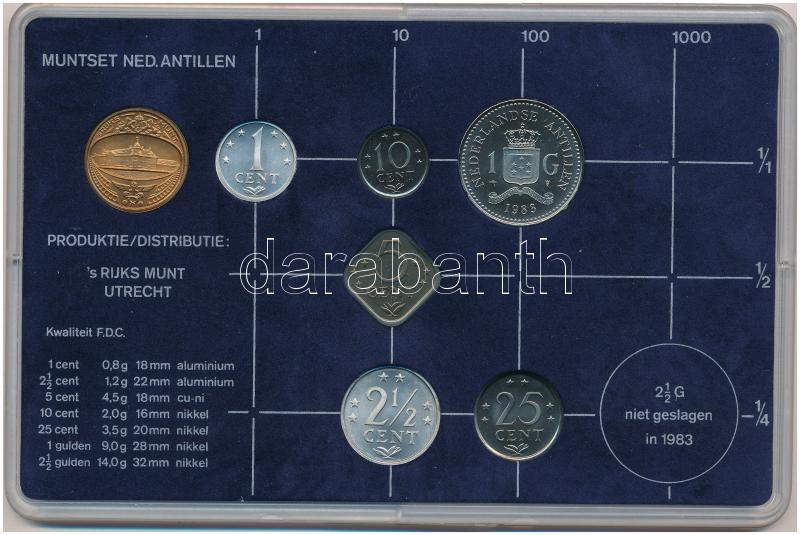 Holland Antillák 1983. 1c-2 1/2G (6xklf) + "Utrechti Verde" zseton plasztiktokos szettben T:1 Netherlands Antilles 1983. 1 Cent - 2 1/2 Gulden (6xdiff) + "Utrecht Mint" jeton in plastic case C:UNC