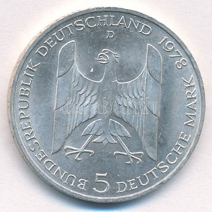 NSZK 1978D 5M Ag "Gustav Stresemann születésének 100. évfordulója" T:1- FRG 1978D 5 Mark Ag "100th Anniversary - Birth of Gustav Stresemann" C:AU Krause KM#147
