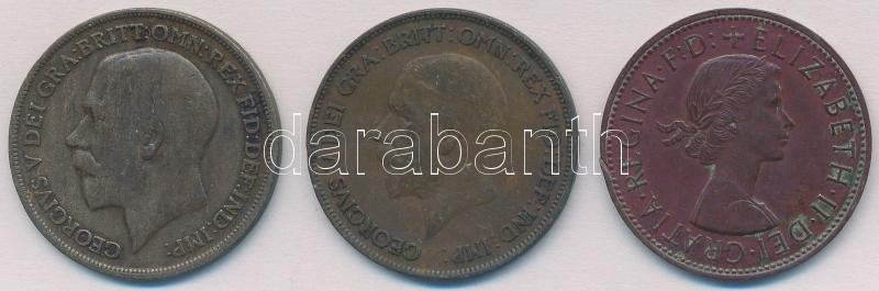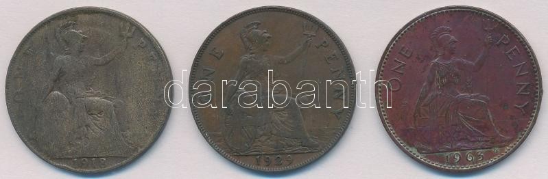 Nagy-Britannia 1918. 1p Br "V. György" + 1929. 1p Br "V. György + 1963. 1p Br "II. Erzsébet" T:2-3 Great Britain 1918. 1 Penny Br "George V" + 1929. 1 Penny Br "George V" + 1963. 1 Penny Br "Elizabeth II" C:XF-F
