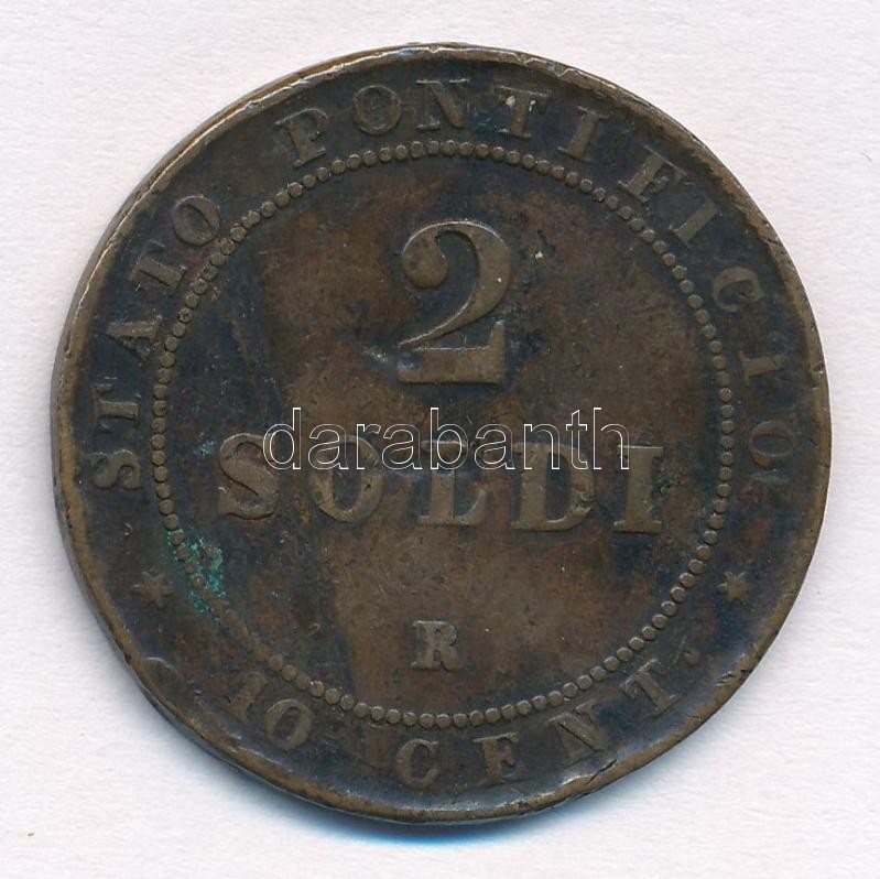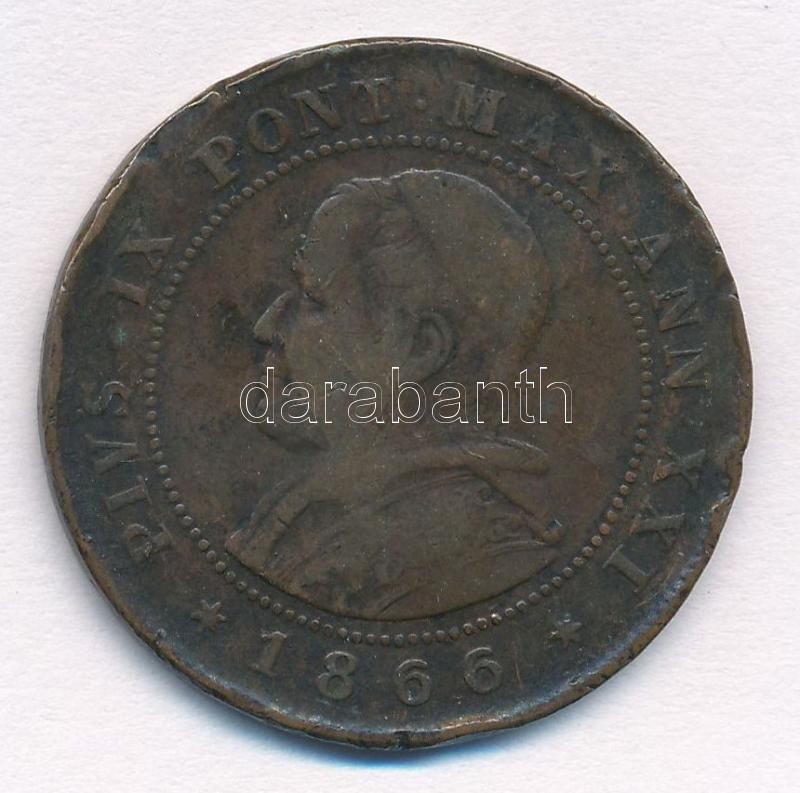 Olasz Államok / Pápai Állam 1866R 2S (10c) Cu "IX. Piusz" T:2-,3 ph., ü. Italian States / Papal States 1866R 2 Soldo (10 Centesimi) Cu "Pius IX" C:VF,F edge error, ding Krause KM#1373