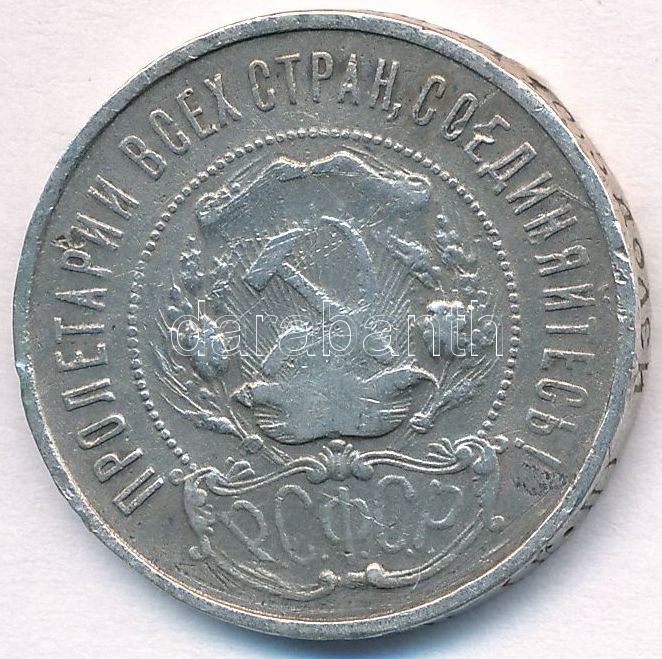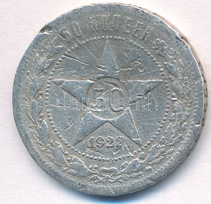 Szocialista Szövetségi Szovjet Köztársaság 1922. 50k Ag T:3 ph.,ü. Russian Socialist Federated Soviet Republic 1922. 50 Kopeks Ag C:F edge error,ding