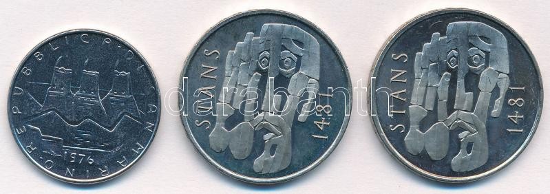 Beschreibung: Vegyes: San Marino 1976. 100L acél + Svájc 1981. 5Fr Cu-Ni (2x) "500. évfordulója a Stansi Egyezménynek" T:1-