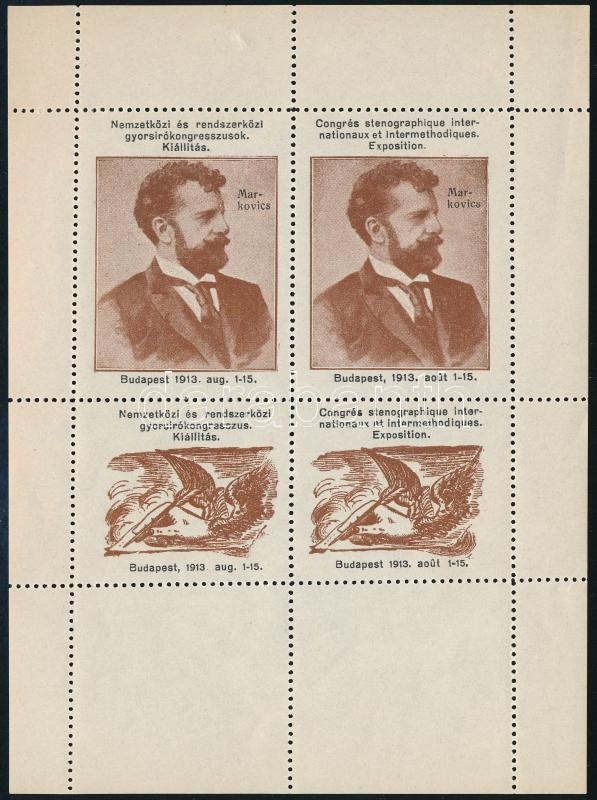 Beschreibung: 1913 Nemzetközi és rendszerközi gyorsírókongresszus kiállítás levélzáró kisív