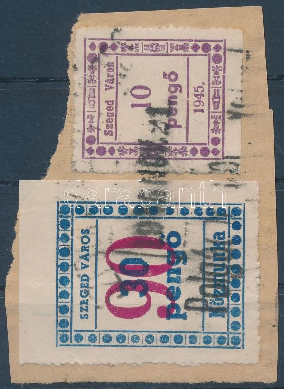 1945 Szeged városi 90P/30P + 10P illetékbélyeg kivágáson (6.000) https://www.darabanth.com/de/349-Fernauktion/349.0/Philatelie-und-Postgeschichte-Ungarn/Stempelmarken~500016/1945-Szeged-varosi-90P30P-plus-10P-illetekbelyeg-kivagason-6000~II1982384
