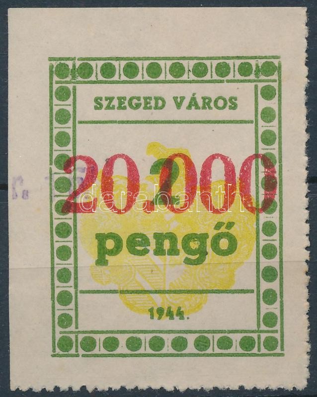 1946 Szeged városi illeték 20.000P/2P I. tip. ívsarki 3-as csík kivágá... https://www.darabanth.com/de/349-Fernauktion/349.0/Philatelie-und-Postgeschichte-Ungarn/Stempelmarken~500016/1946-Szeged-varosi-illetek-20000P2P-I-tip-ivsarki-3-as-csik-kivagason-6000~II1982339