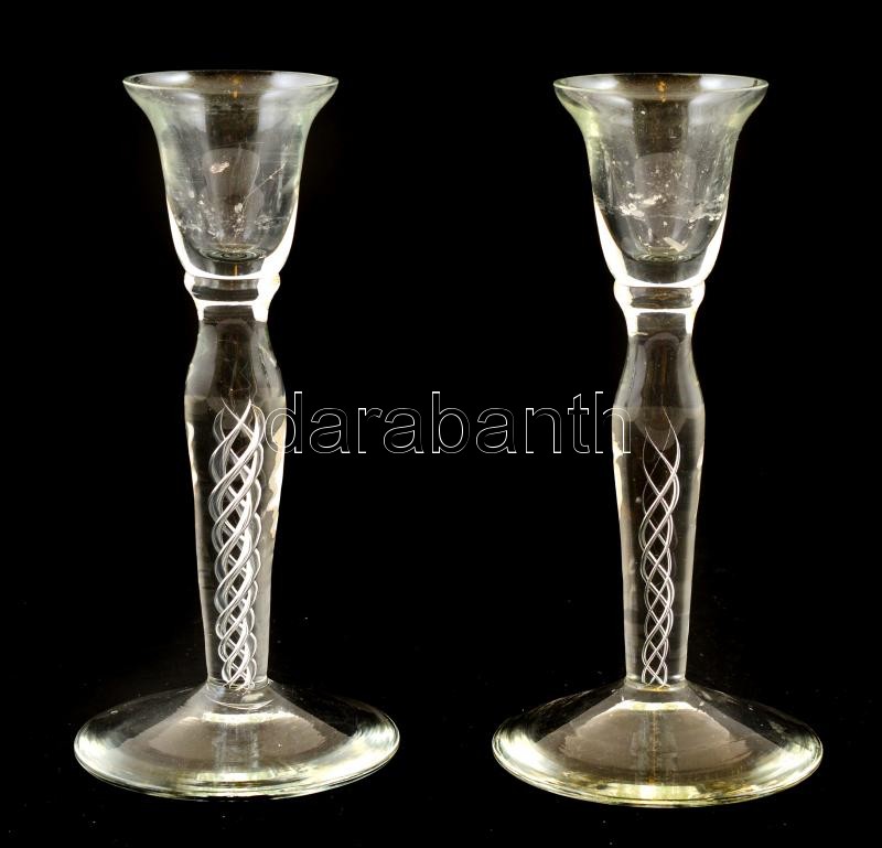 Beschreibung: Fújt gyertyatartó párba ( 2db), belül csavart szálakkal, jelzés nélkül, hibátlan, m: 15 cm (2×)
