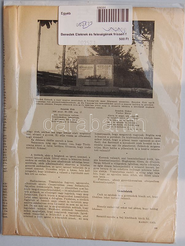 Benedek Eleknek és feleségének frissen felavatott síremléke az Új Idők... https://www.darabanth.com/de/35-Fernauktion/35.0/Andere-Sammelgebiete/~187/Benedek-Eleknek-es-felesegenek-frissen-felavatott-siremleke-az-Uj-Idok-c-lap-1935-oktoberi-~II68684