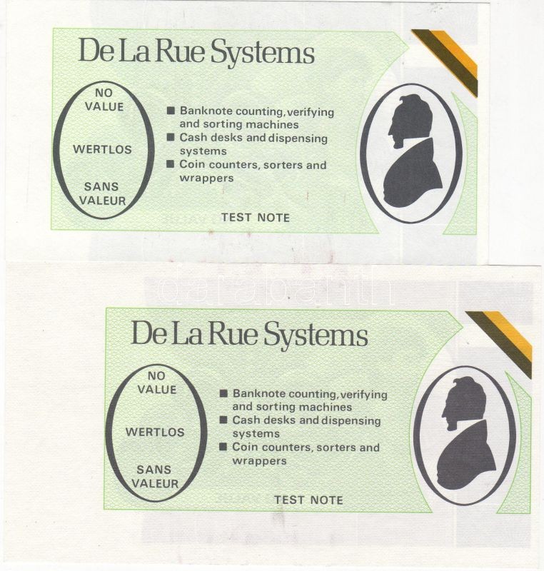 Beschreibung: De La Rue bankjegygyártó cég 2 klf tesztbankjegye T:I