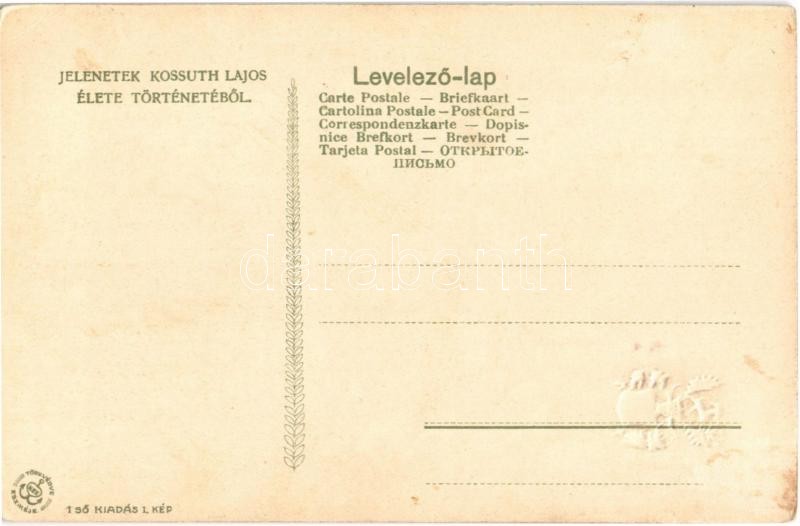 Jelenetek Kossuth Lajos élete történetéből 1. kiadás I. kép. Szecessziós litho / Scenes from the life of Lajos Kossuth. Athenaeum rt. Art Nouveau litho s: K. Sávely D.