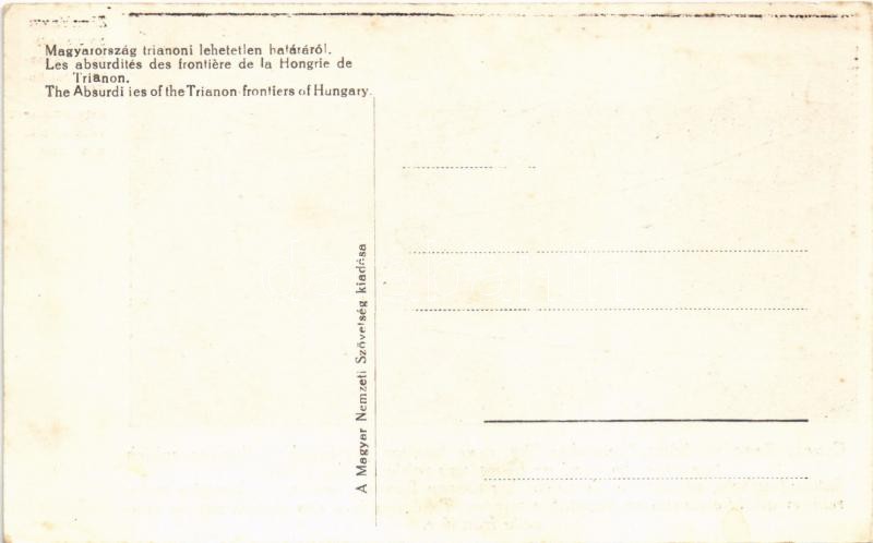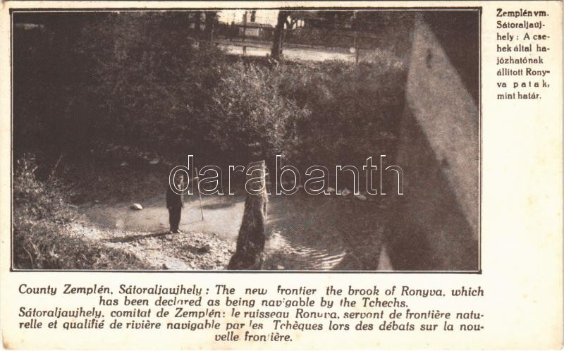 Magyarország trianoni lehetetlen határáról. Zemplén vm. Sátoraljaújhely: a csehek által hajózhatónak állított Ronyva patak, mint határ. Magyar Nemzeti Szövetség kiadása / The impossible borders of Hungary after Trianon, irredenta propaganda
