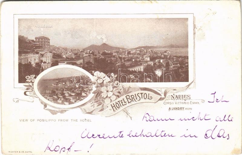 Napoli, Naples; Hotel Bristol, view of Posilippo from the hotel. Art N... https://www.darabanth.com/de/35-Gross-Auktion/35.1/Ansichtskarten/Italien~14748/Napoli-Naples-Hotel-Bristol-view-of-Posilippo-from-the-hotel-Art-Nouveau-floral-EK~II2361727