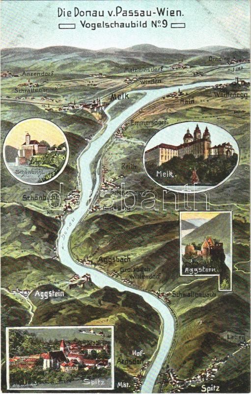 Donau von Passau-Wien. Vogelschaubild No. 9. / map with Danube river. ... https://www.darabanth.com/de/35-Gross-Auktion/35.1/Ansichtskarten/Osterreich~14682/Donau-von-Passau-Wien-Vogelschaubild-No-9-map-with-Danube-river-Atelier-E-Felle~II2336860