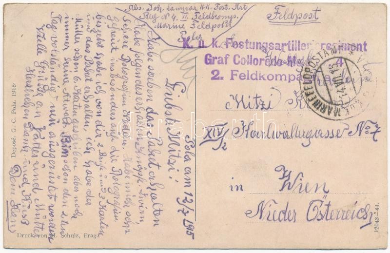 Beschreibung: 1915 Eildampfer Prinz Hohenlohe / SS Prinz Hohenlohe Austro-Hungarian cargo ship. G. C. Pola 1915. + "K.u.K. Festungsartillerieregiment Graf Colloredo-Mels 2. Feldkompagnie" (wet damage)