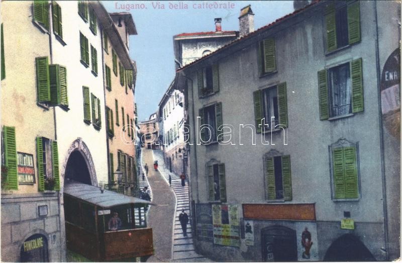 Lugano, Via della cattedrale, Funicolare / street view with funicular ... https://www.darabanth.com/de/35-Gross-Auktion/35.1/Ansichtskarten/Schweiz~14755/Lugano-Via-della-cattedrale-Funicolare-street-view-with-funicular-railway-train~II2370666