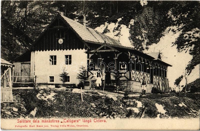 1908 Csiklovabánya, Csiklóbánya, Ciclova Montana; Kalugra kolostor / S... https://www.darabanth.com/de/35-Gross-Auktion/35.1/Ansichtskarten/Siebenburgen~14667/1908-Csiklovabanya-Csiklobanya-Ciclova-Montana-Kalugra-kolostor-Salutare-dela-manastirea-Cal~II2133103
