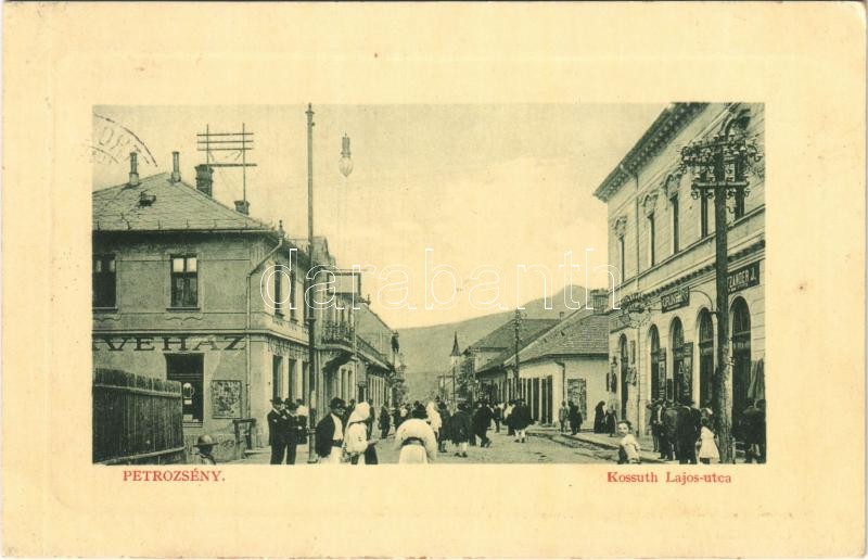 1911 Petrozsény, Petrosani; Kossuth Lajos utca, kávéház, Grüner üzlete... https://www.darabanth.com/de/35-Gross-Auktion/35.1/Ansichtskarten/Siebenburgen~14667/1911-Petrozseny-Petrosani-Kossuth-Lajos-utca-kavehaz-Gruner-uzlete-WL-Bp-5390-1911-13~II2364194