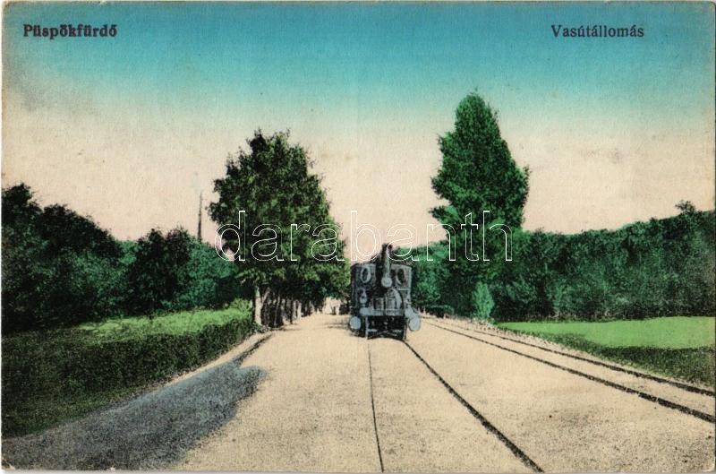 Beschreibung: Püspökfürdő, Szentlászlófürdő, Baile 1 Mai; vasútállomás, gőzmozdony / railway station, locomotive (Rb)
