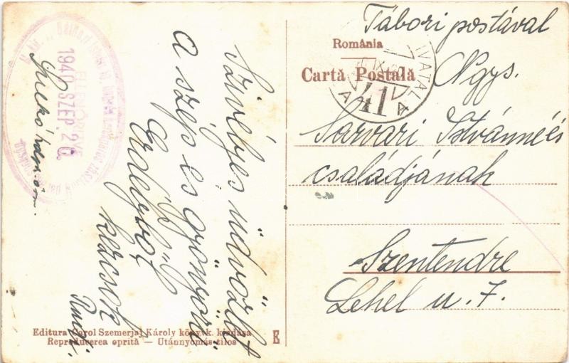 Beschreibung: Székelykeresztúr, Kristur, Cristuru Secuiesc; I. Ferdinand király utca / street (fl) + "M. kir. Báthori István 10. honvéd kerékpáros zászlóalj parancsnokság"