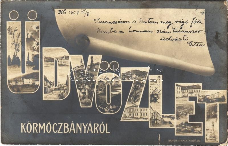 1907 Körmöcbánya, Kremnitz, Kremnica; Üdvözlet montázs / greeting mont... https://www.darabanth.com/de/35-Gross-Auktion/35.1/Ansichtskarten/Slowakei~14668/1907-Kormocbanya-Kremnitz-Kremnica-Udvozlet-montazs-greeting-montage-EK~II2334992