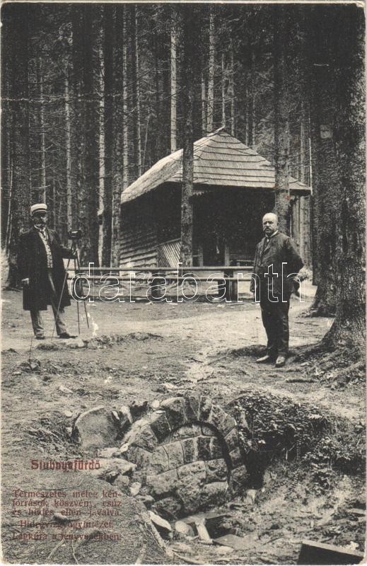 1908 Stubnyafürdő, Túróchévíz, Stubnianske Teplice, Turcianske Teplice; forrás, erdei ház, fényképész / spring well, forest house, photographer with camera (fa)