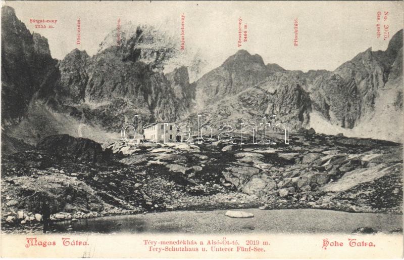1909 Tátra, Vysoké Tatry; Téry menedékház az Alsó-Öt-tó. Franz Pietsch... https://www.darabanth.com/de/35-Gross-Auktion/35.1/Ansichtskarten/Slowakei~14668/1909-Tatra-Vysoke-Tatry-Tery-menedekhaz-az-Also-Ot-to-Franz-Pietschmann-No-2075-mount~II2365970