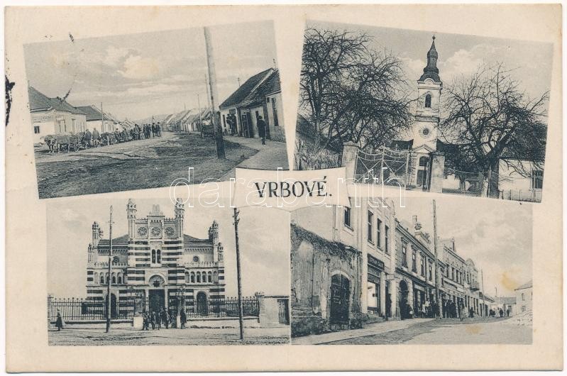 1938 Verbó, Vrbové; zsinagóga, utca, templom, J. Adamec és Stefan Gauk... https://www.darabanth.com/de/35-Gross-Auktion/35.1/Ansichtskarten/Slowakei~14668/1938-Verbo-Vrbove-zsinagoga-utca-templom-J-Adamec-es-Stefan-Gauk-uzlete-Koloman-kiadasa~II2370775