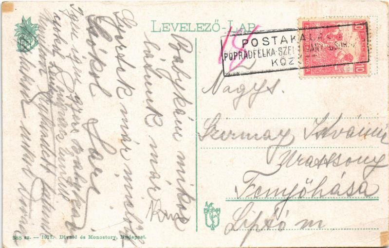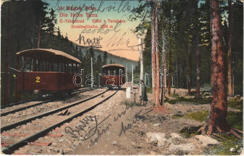 Beschreibung: Ótátrafüred, Stary Smokovec (Magas-Tátra, Vysoké Tatry); Sikló a Tarajkára, vonatok / Drahtseilbahn / funicular railway, trains (EB) + "POSTAKALAUZ POPRÁDFELKA-SZENTIVÁNYI-CSORBATÓ KÖZÖTT"