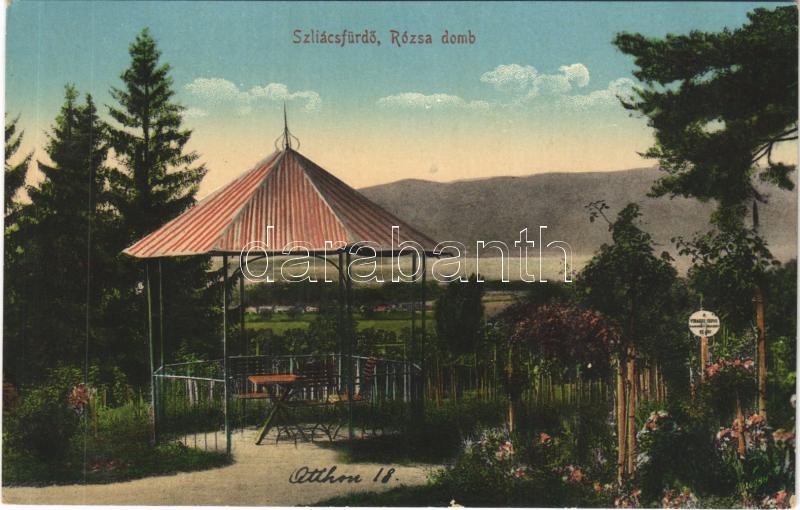 Szliácsfürdő, Kúpele Sliac; Rózsa domb, pavilon, "Virágot tépni t... https://www.darabanth.com/de/35-Gross-Auktion/35.1/Ansichtskarten/Slowakei~14668/Szliacsfurdo-Kupele-Sliac-Rozsa-domb-pavilon-Viragot-tepni-tilos-tabla-pavilion~II2363924
