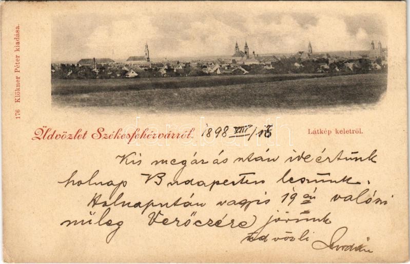 1898 (Vorläufer) Székesfehérvár, látkép keletről. Klökner Péter 176. ... https://www.darabanth.com/de/35-Gross-Auktion/35.1/Ansichtskarten/Ungarn~14666/1898-Vorlaufer-Szekesfehervar-latkep-keletrol-Klokner-Peter-176-EK~II2161368