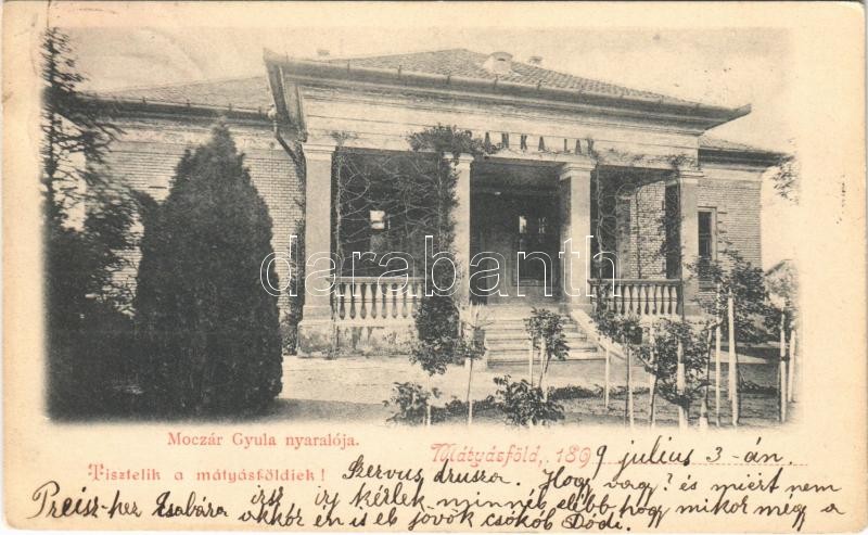 Beschreibung: 1899 (Vorläufer) Budapest XVI. Mátyásföld, Moczár Gyula nyaralója. Tisztelik a mátyásföldiek!