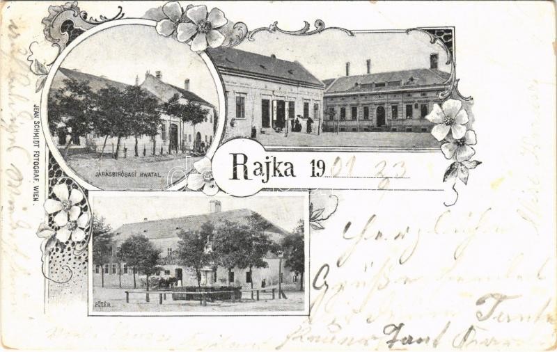 1901 Rajka, Járásbírósági hivatal, Fő tér. Jean Schmidt Art Nouveau, f... https://www.darabanth.com/de/35-Gross-Auktion/35.1/Ansichtskarten/Ungarn~14666/1901-Rajka-Jarasbirosagi-hivatal-Fo-ter-Jean-Schmidt-Art-Nouveau-floral-litho-EB~II2365799