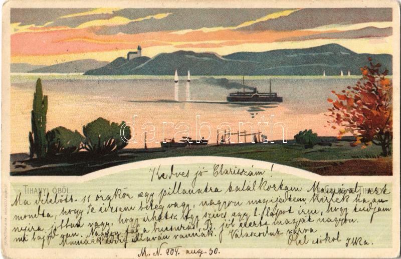 1904 Tihanyi öböl. Bruchsteiner és fia litho (EB) https://www.darabanth.com/de/35-Gross-Auktion/35.1/Ansichtskarten/Ungarn~14666/1904-Tihanyi-obol-Bruchsteiner-es-fia-litho-EB~II2142126