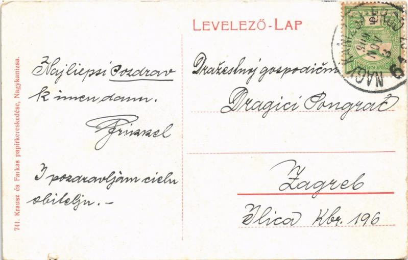Beschreibung: 1909 Nagykanizsa, Fő út. Krausz és Farkas 741. + "NAGY-KANIZSA-BROD 61. SZ." mozgóposta (kis szakadás / small tear)