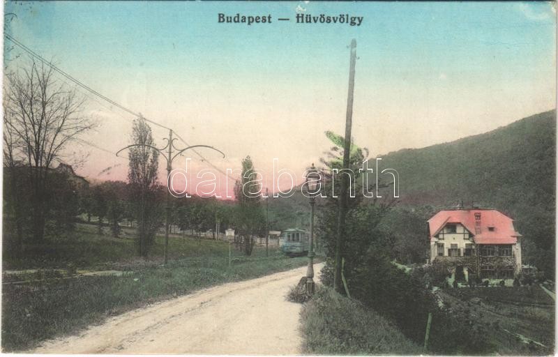 1914 Budapest II. Hűvösvölgy, villamos, nyaraló https://www.darabanth.com/de/35-Gross-Auktion/35.1/Ansichtskarten/Ungarn~14666/1914-Budapest-II-Huvosvolgy-villamos-nyaralo~II2370582