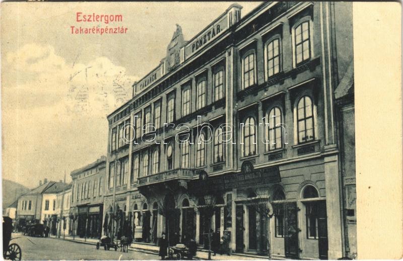 Beschreibung: 1921 Esztergom, Takarékpénztár, Fried Arnold és fia üzlete. W.L. Bp. 129.