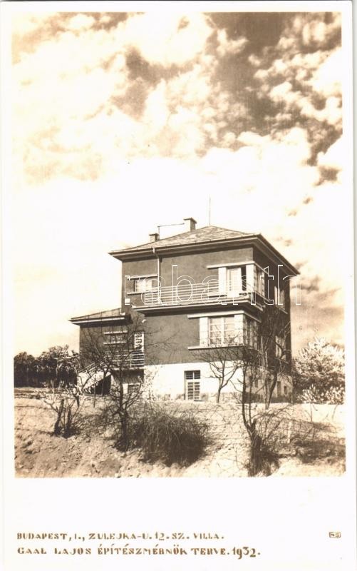 1932 Budapest XII. Orbánhegy, Gaal Lajos építészmérnök terve, Zulejka ... https://www.darabanth.com/de/35-Gross-Auktion/35.1/Ansichtskarten/Ungarn~14666/1932-Budapest-XII-Orbanhegy-Gaal-Lajos-epiteszmernok-terve-Zulejka-utca-12-sz-alatti-vill~II2363036