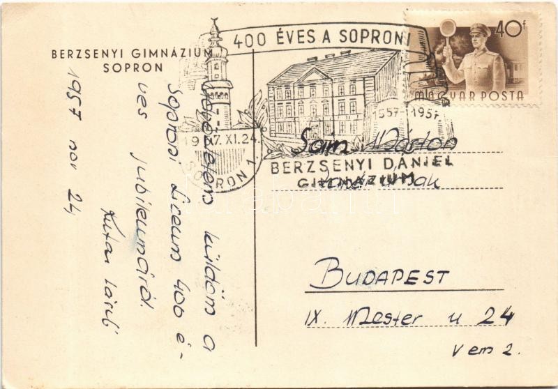 Beschreibung: 1957 Sopron, 400 éves a soproni Berzsenyi Dániel Gimnázium + So. Stpl s: Sterben (EK)