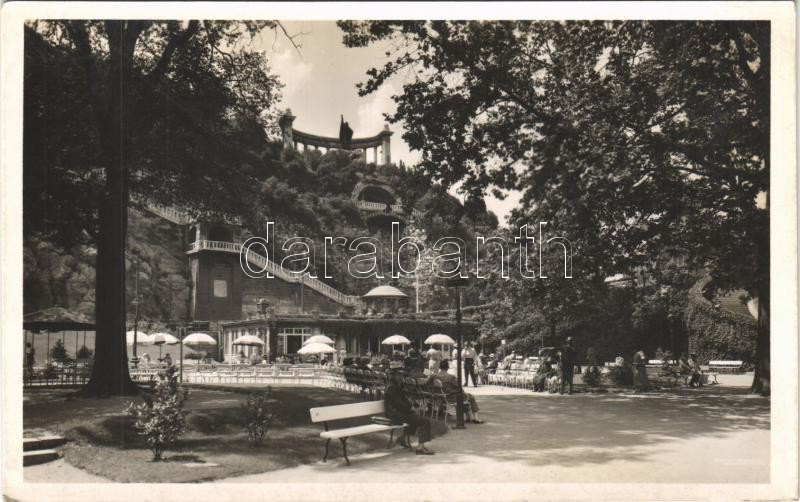 Beschreibung: Budapest I. Szent Gellért szobor, Gellérthegyi feljárat, Hungária és Attila gyógyforrások a Döbrentei térnél, Gellért Udvar