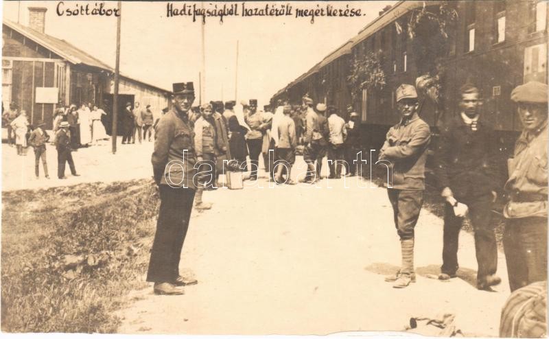 Csót-tábor, hadifogságból hazatérők megérkezése a vasútállomáson, kato... https://www.darabanth.com/de/35-Gross-Auktion/35.1/Ansichtskarten/Ungarn~14666/Csot-tabor-hadifogsagbol-hazaterok-megerkezese-a-vasutallomason-katonak-photo~II2363186