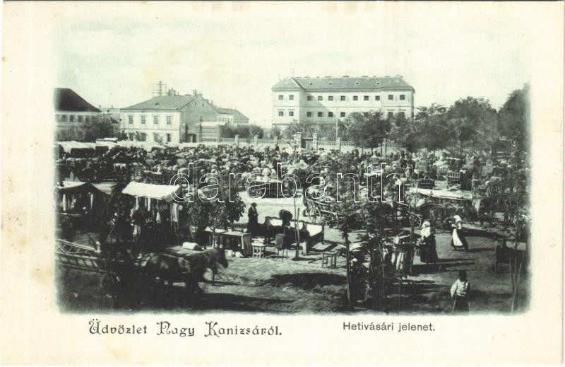 Nagykanizsa, Heti vásár, piac. Alt és Böhm 8808. https://www.darabanth.com/de/35-Gross-Auktion/35.1/Ansichtskarten/Ungarn~14666/Nagykanizsa-Heti-vasar-piac-Alt-es-Bohm-8808~II2361418