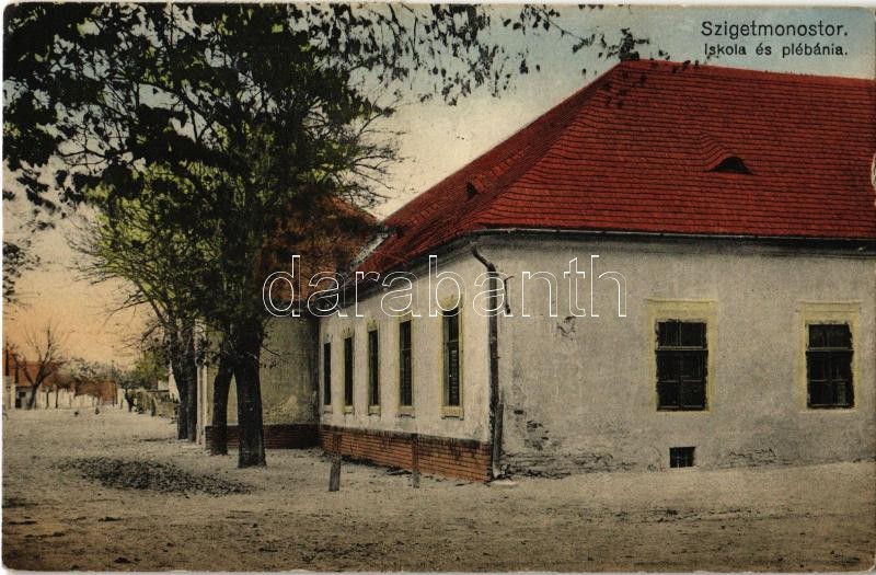Szigetmonostor, iskola és plébánia https://www.darabanth.com/de/35-Gross-Auktion/35.1/Ansichtskarten/Ungarn~14666/Szigetmonostor-iskola-es-plebania~II2134089