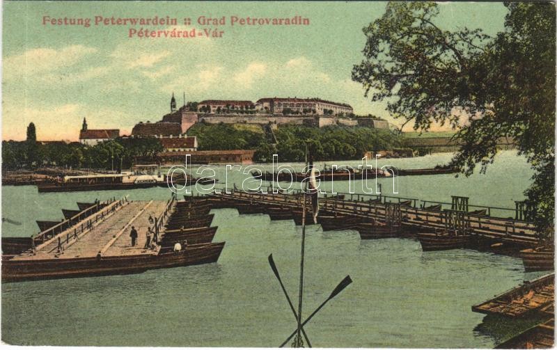 Beschreibung: 1909 Pétervárad, Peterwardein, Petrovaradin (Újvidék, Novi Sad); vár, hajóhíd, "ALADÁR" gőzüzemű lapátkerekes gőzhajó / castle, pontoon bridge, Hungarian passenger steamship