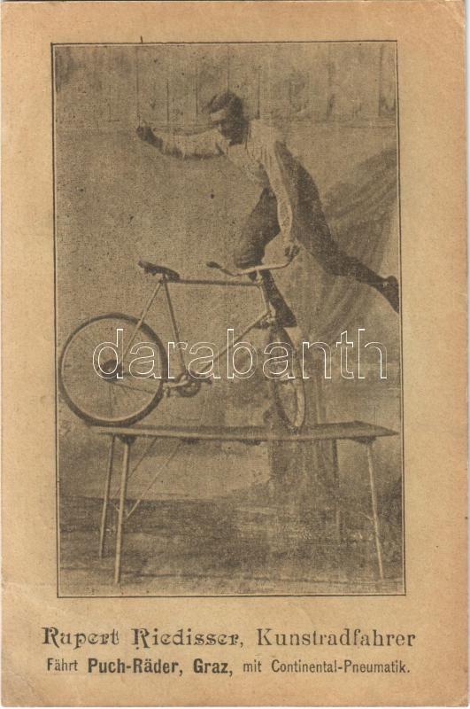 Rupert Riedisser, Kunstradfahrer. Fährt Puch-Räder, Graz mit Continent... https://www.darabanth.com/de/35-Gross-Auktion/35.1/Ansichtskarten/Werbungen~14742/Rupert-Riedisser-Kunstradfahrer-Fahrt-Puch-Rader-Graz-mit-Continental-Pneumatik-Kerekparos-~II2371689