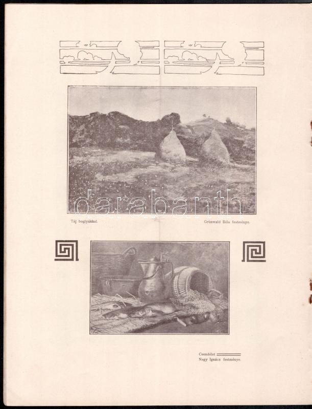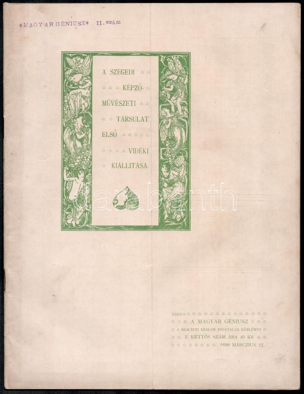 1899 A Szegedi Képzőművészeti Társulat első vidéki kiállítása. Kiadja: Magyar Géniusz a Nemzeti Szalon hivatalos közlönye, 1899. március 12. Korabeli reklámokkal. Számos illusztrációval, közte Körösfői Kriesch Aladár, Glatz Oszkár, Iványi-Grünwald Béla, Basch Árpád és mások műveinek reprodukcióival, hajtásnyommal. Bp., Kosmos, 16 sztl. lev.