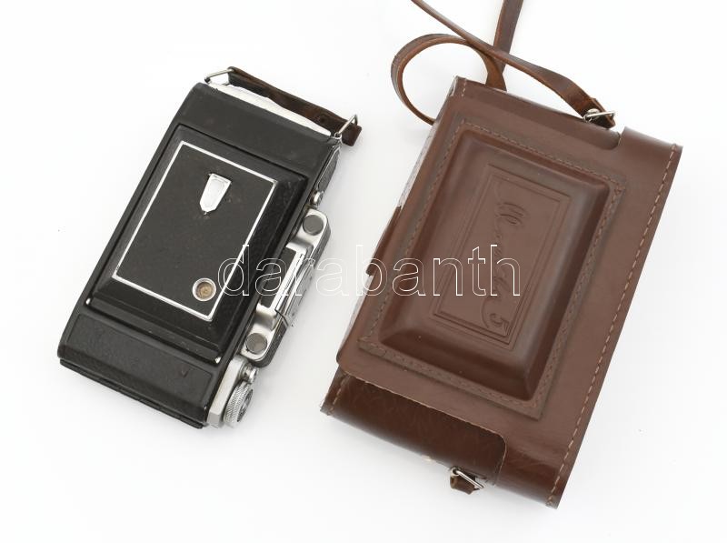 Krasnogorsk Moszkva 5 / Moscow Mod 5 távmérős fényképezőgép Indusztar-23 110 mm f/4,5 objektívvel, működőképes, jó állapotban. Bőr tokkal. / Vintage Russian rangefinder folding camera in good condition.